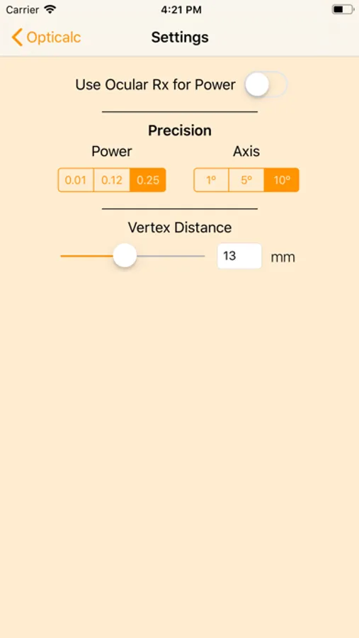 Opticalc allows you to work in varying precision in both power and axis, depending on the parameter availability of the lens you are working with.