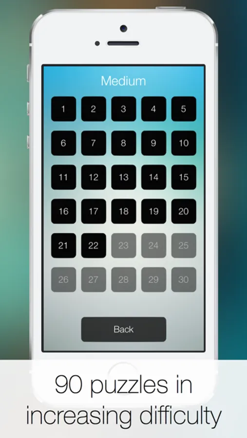 The 90 carefully designed puzzles provide a smooth learning curve. Once you've finished all 90, you can have unlimited fun with the randomly generated puzzles. You can also try to master the puzzles and challenge other players online to see who can finish the puzzles in the least amount of moves.