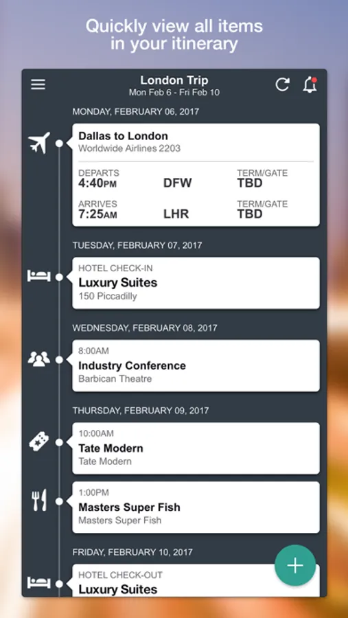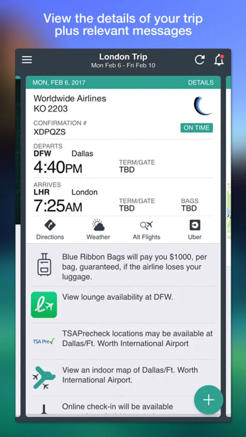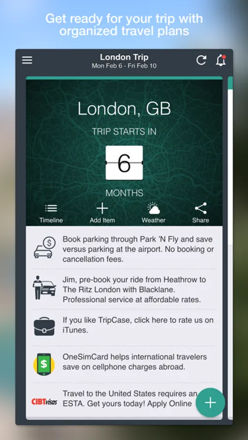 • Share your trip with others & TripCase will keep them updated on your behalf