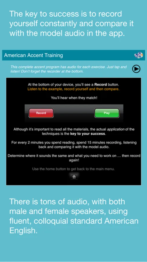 Learn pronunciation, word connections and the American speech music in a simple step-by-step process. You can use your iPhone headphones to listen, record on the digital recorder, and compare yourself with the model audio. (The app works great on the iPod, but the recorder does not appear. Sorry!)