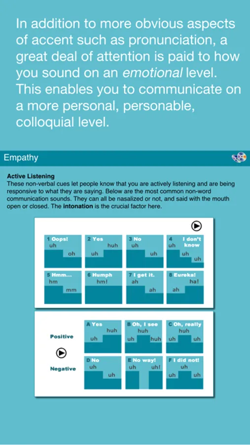 You start with the most basic intonation patterns and go through to the most advanced levels in English. Your comprehension will increase dramatically. This is excellent practice for TOEFL and TSE. ESL instructors will find this to be a great way to pick up the basics of teaching the American accent. Perfect for a daily commute or a long trip!