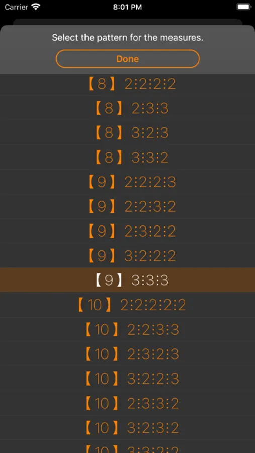 • 48 different beat patterns (meters): 1 through 12(3+3+3+3)