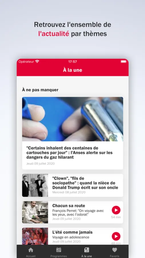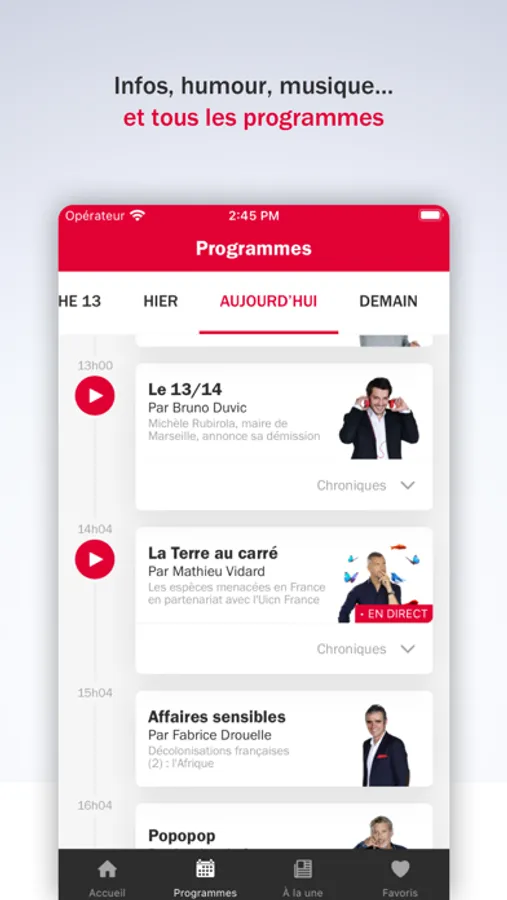 - Accédez à la grille des programmes radio, aux invités du jour et sujets des émissions