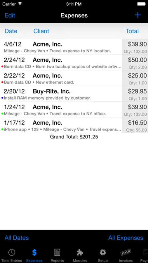 - Track Expenses - from Mileage to Meals to Burning CD's and anything else you want to define