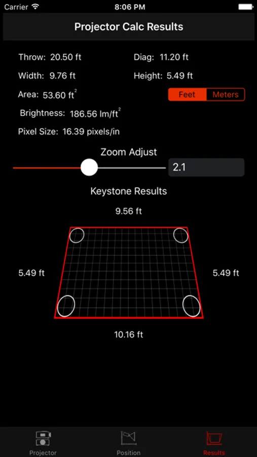 Additionally, ProjectorCalc can give you an estimate of how much keystone distortion will occur by calculating the length of each side of the distorted image.