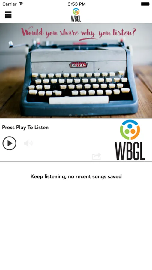 Inside the WBGL app, you can request prayer and get notified instantly when someone prays for you! Interact with your WBGL friends through text, phone, and email. Discover recently played songs, get yourself heard on the radio with Open Mic, and receive hope and encouragement in your faith no matter where you are when you download the WBGL app.