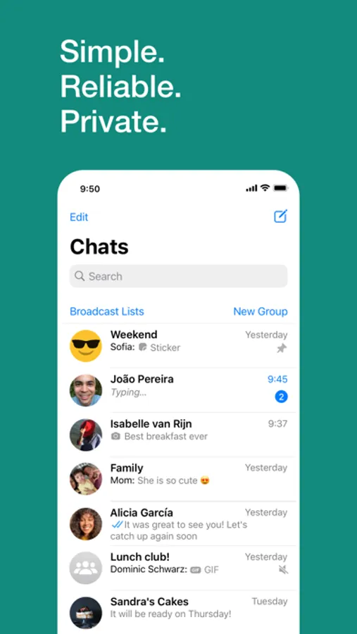 Stay in touch with your friends and family. End-to-end encrypted group chats let you share messages, photos, videos and documents across mobile and desktop.