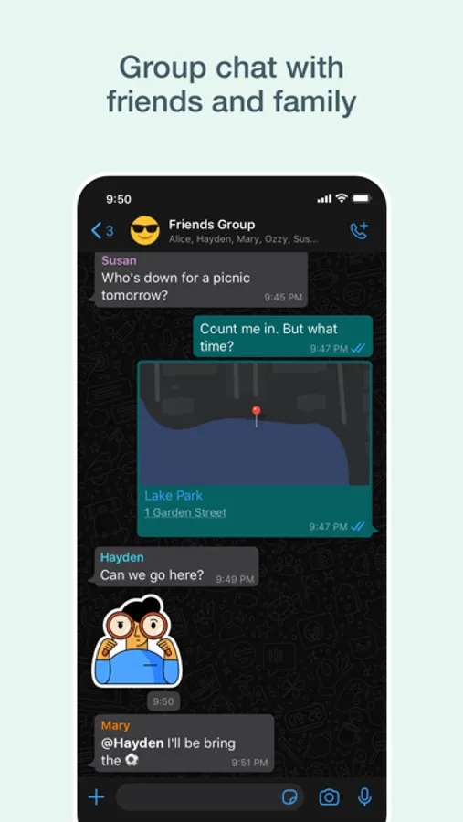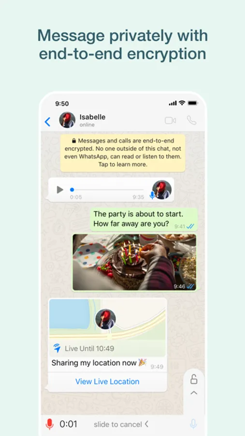 Share your location with only those in your individual or group chat, and stop sharing at any time. Or record a voice message to connect quickly.