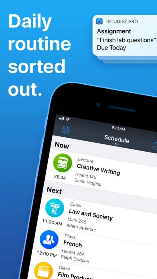 The main Today view updates your current schedule in the real-time mode. You’ll see online classes, regular schedule, due assignments and even past classes if you need to do some nostalgia.