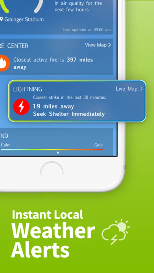 • Spark Lightning Alerts: get minute-by-minute, mile-by-mile lightning proximity alerts