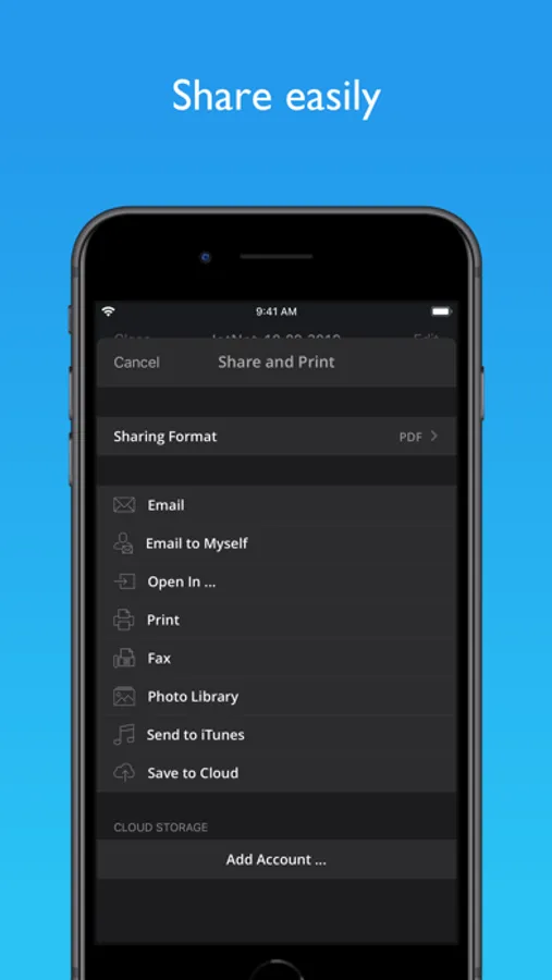 * Upload to Dropbox, Google Drive, Box, OneDrive, OneNote, Evernote, iCloud, and more