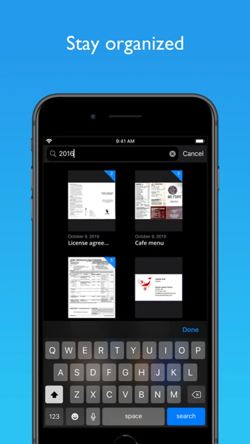 With a PDF scanner in your pocket, there is no need to ever keep receipts in your wallet, tax records in your filing cabinet, or notes scattered across your desk. Scan and archive digital copies, and simplify your life.