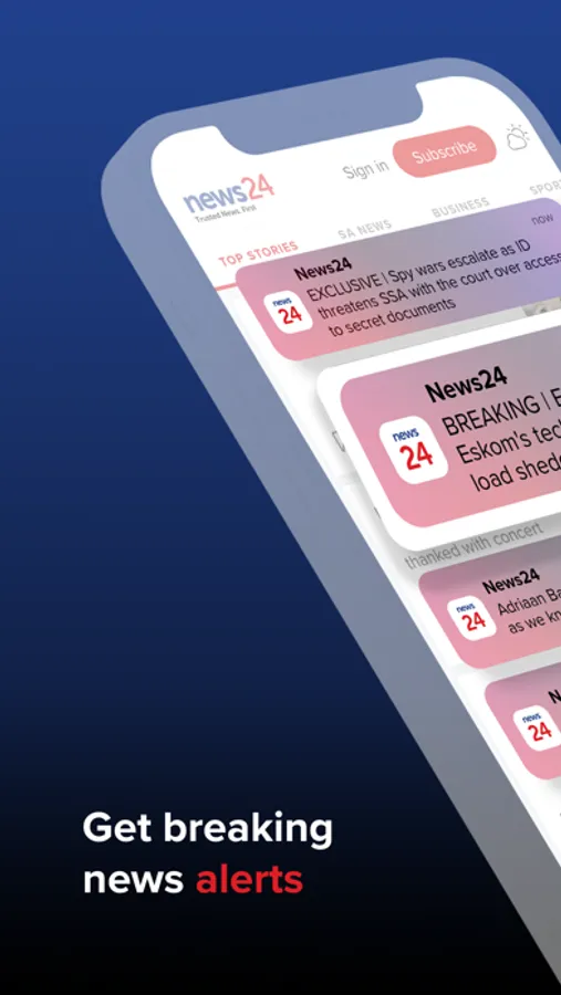 TRUSTED NEWS. FIRST. Our award-winning team of journalists brings you quality breaking news as it happens. Whether you are looking for in-depth analysis, the latest in entertainment, sport, politics or business you will find it in our News24 app!
