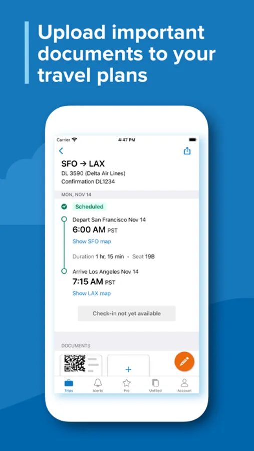 Upload PDFs, photos, boarding passes, digital passport QR codes and more to your travel itinerary, so you can track everything in one place.