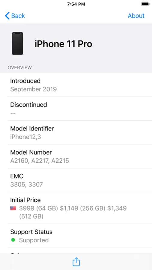 Mactracker provides detailed information on every Apple Macintosh, iPod, iPhone, and iPad ever made, including items such as processor speed, memory, graphic cards, supported OS versions, price, storage, and expansion options. Also included is information on early Apple systems, Newton, Apple TV, Apple Watch, Apple accessories, audio, displays, printers, scanners, storage, Wi-Fi products, and operating systems.