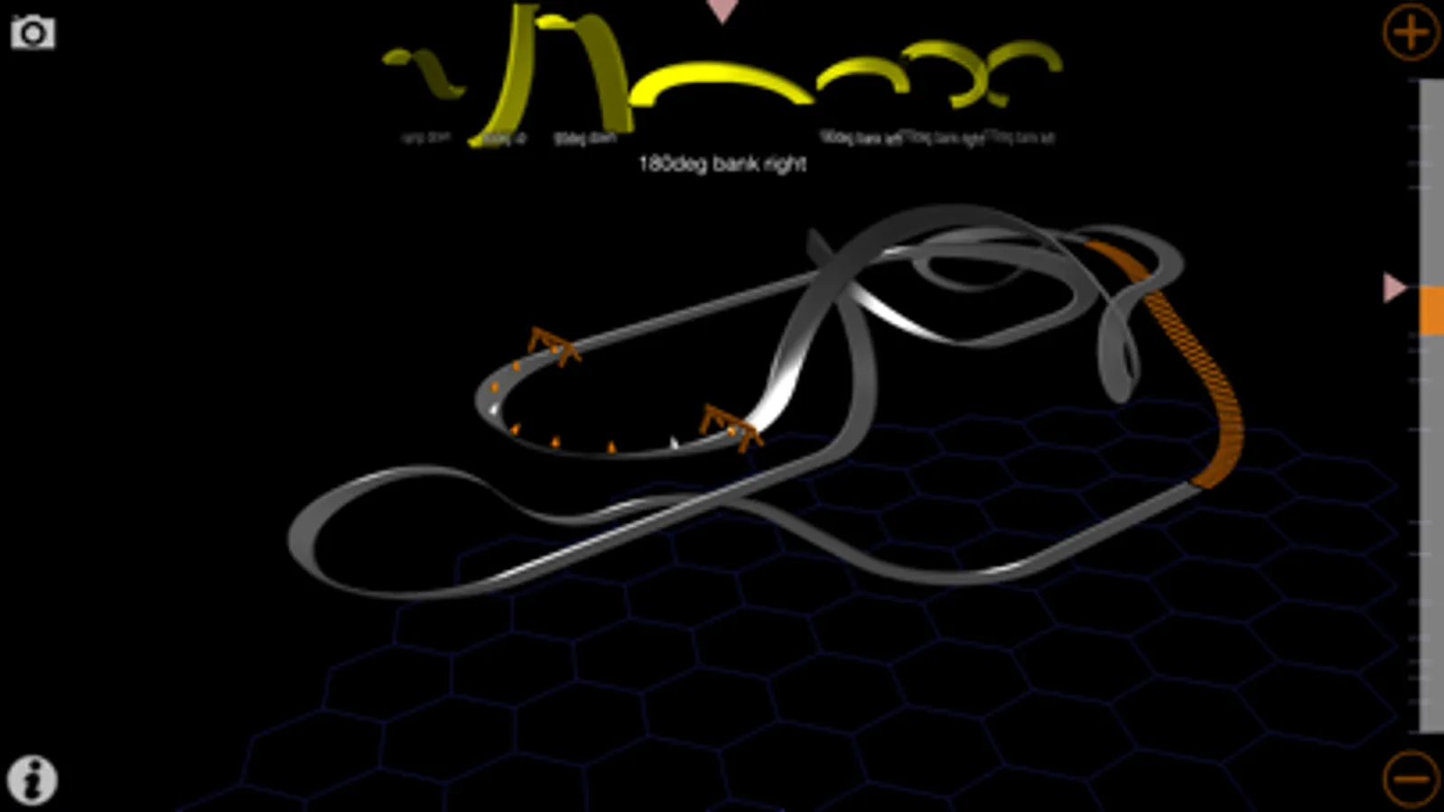 Editing tracks is extremely powerful, start with a simple or complicated example, delete (hit minus) any unwanted sections, scroll the pieces at the top until you see the full 3D preview of the piece you want to add, hit plus, then repeat until you are finished. If you get the ends close enough together, the track will automatically join and become continuous, otherwise your ride will just jump back to the beginning when it reaches the end, no problem. To enter Pro mode, just touch the "i" and select Pro Mode. All simple pieces may be edited in excruciating detail, with two stage sliders, or you can add blank pieces (hit plus) and make them do anything you want. Slide the timeline on the right to zip back and forth through the track. When finished, just touch the "i" again, touch save, rotate the preview as desired and touch save again. It will now show up in your track list. Fast and Easy!