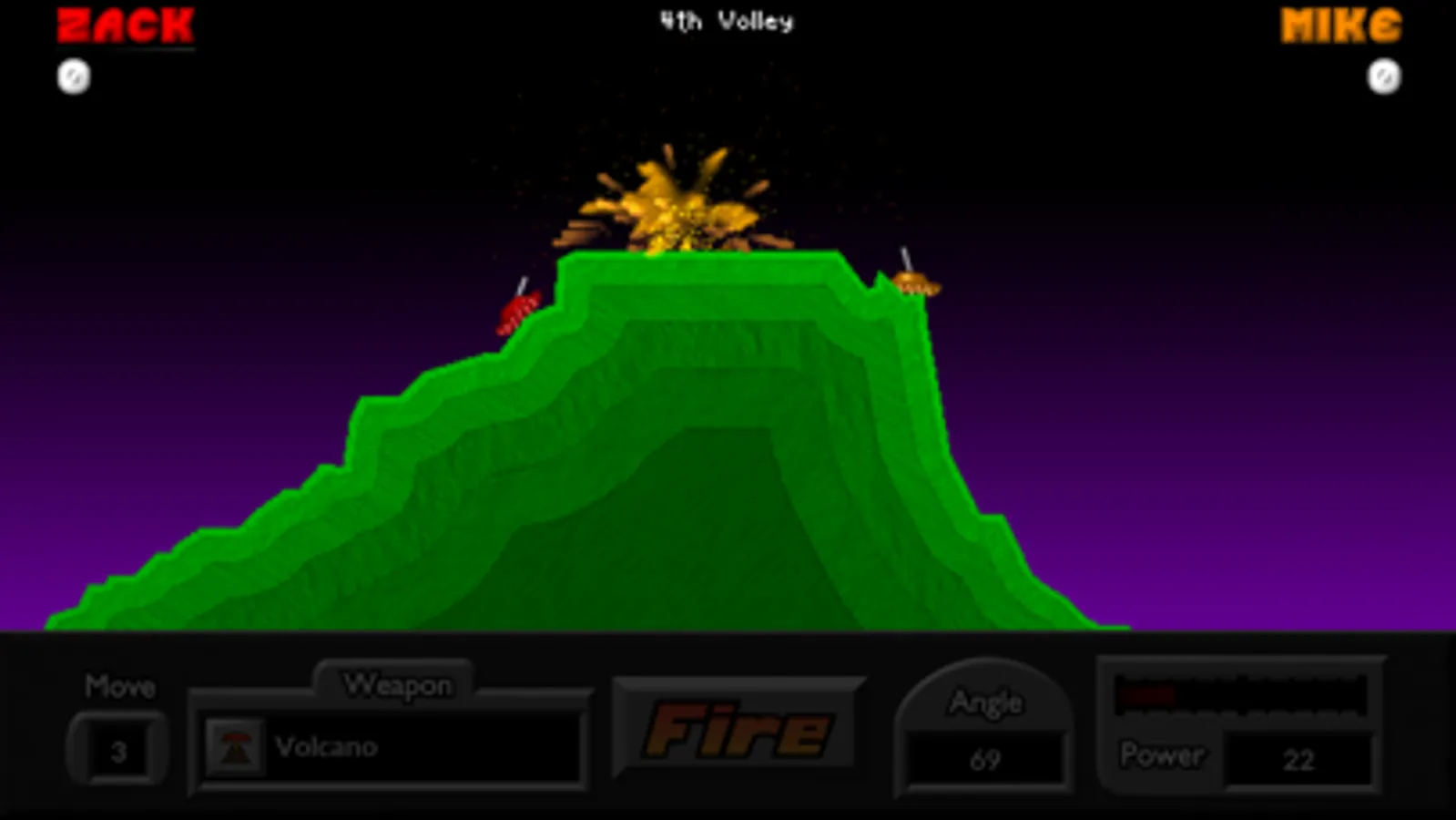 Experience the thrill of launching volley after volley of powerful and fun weapons across the battlefield, using very simple controls. Select your angle, power, and FIRE! Your arsenal of unique and useful weapons includes: Napalm, Firecracker, Skipper, Cruiser, Dirt Mover, and dozens more! This is the light-hearted game of heavy artillery for everyone.