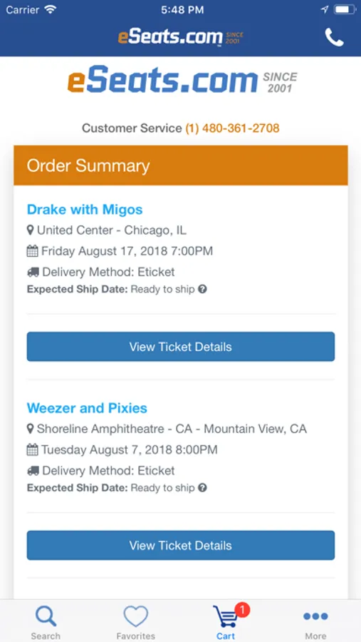 I really appreciate this app a lot! I've used it twice in less than a week. Last week for U2 tickets and this week for Boyz || Men tickets. It's so much more convenient to purchase tickets through the eSeats app on my iPhone than to have to log on to Ticketmaster through a computer, then type in a squiggly line only to find the tickets you want aren't available. Not to mention the customer service is great! The follow up phone calls to make sure you received your tickets. I greatly appreciate that! I'll definitely continue using this app to purchase tickets! - Bill from Whittier CA