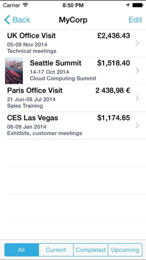 - Create/edit/delete/browse expense groupings: Trip/Project