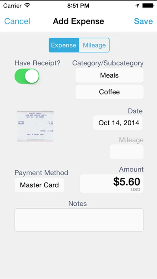 - Submit expense reports by email, or export a HTML/CSV file via Wifi with all receipts (in a Zip file)