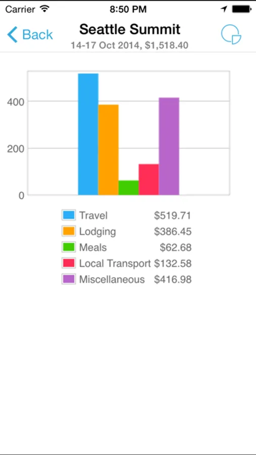 - View pie/bar chart of the expense break-down at the Trip/Project level
