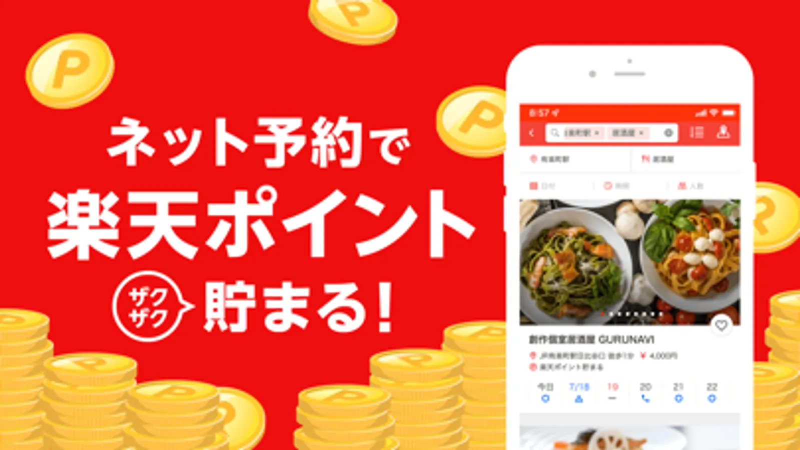 レストランのネット予約でダントツお得に楽天ポイントが貯まるグルメアプリ!