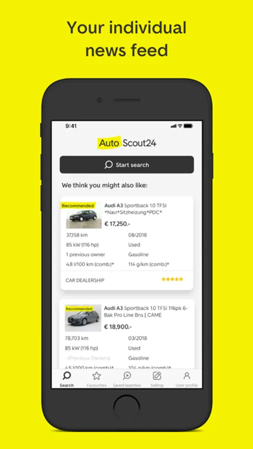 With one of the best car apps. Whether you're looking for used cars, new cars or motorbikes. Create car classifieds, receive price reductions, new car offers or changes of your favorite cars - you'll get all the important information from our car app via push to your mobile phone. On top of that, the AutoScout24 features such as notepad & search filters will help you to find your new car easily. The AutoScout24 app is the must-have app for car fans searching for their next car.