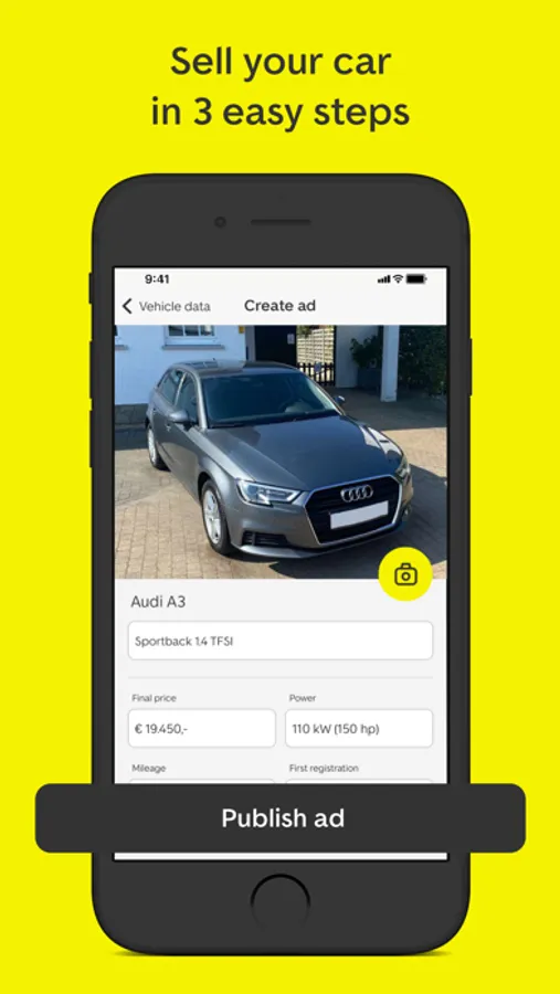 You want to sell your car via app? With AutoScout24, it's easy to create your acr classified ad. Whether VW, Audi, BMW, Mercedes, Ford or Tesla, just upload pictures, get your value check free of charge and reach millions of interested people!
