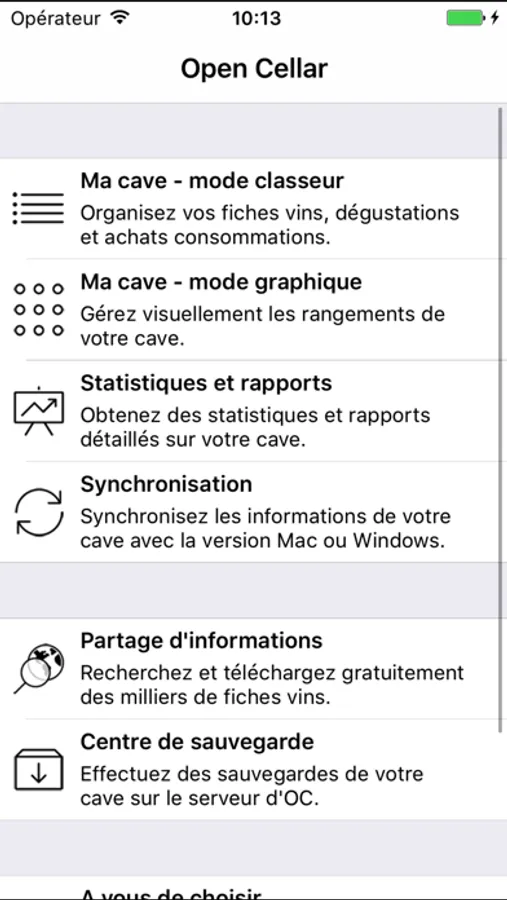 Through the basic functions of Open Cellar, you manually manage your bottles, with multi-touch mode possibility.