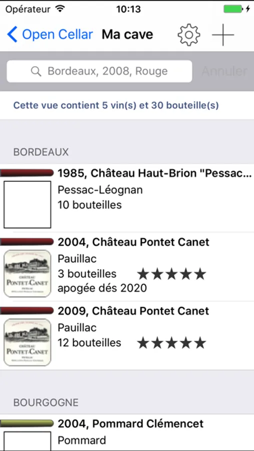 All the characteristics of your wines are included within Open Cellar (year, name, label, geographical information, classification, food and wines association, peak period, temperature, comments…etc)