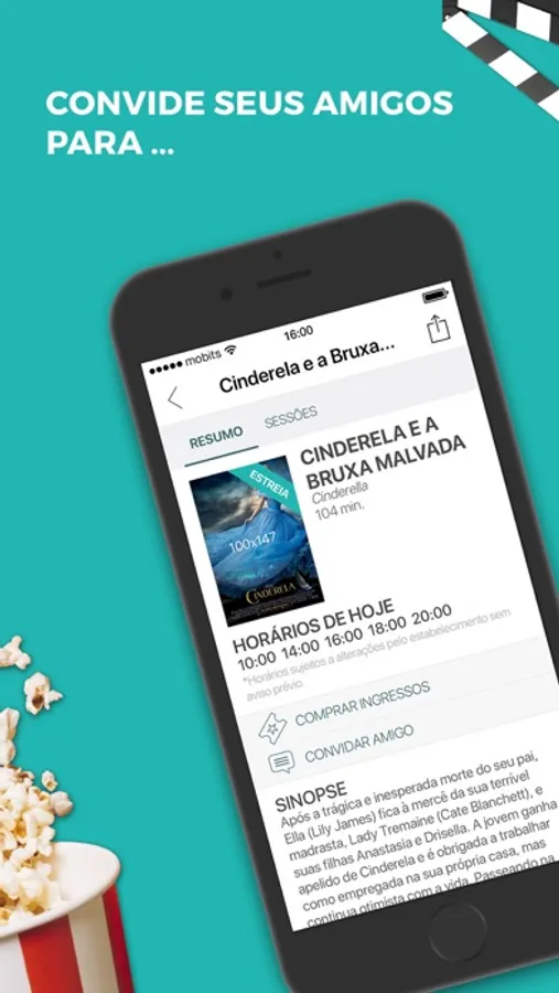 Aproveite também para comprar ingressos e convidar seus amigos para pegar aquele cineminha direto do aplicativo.