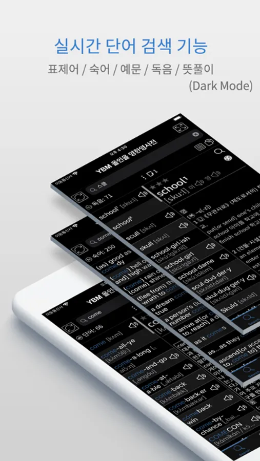 The Combined YBM All in All English-Korean and Korean-English Dictionary for iPhone/iPod touch/iPad contains all headwords from “YBM All in All English-Korean Dictionary” and “YBM All in All Korean-English Dictionary” published by YBM Net.