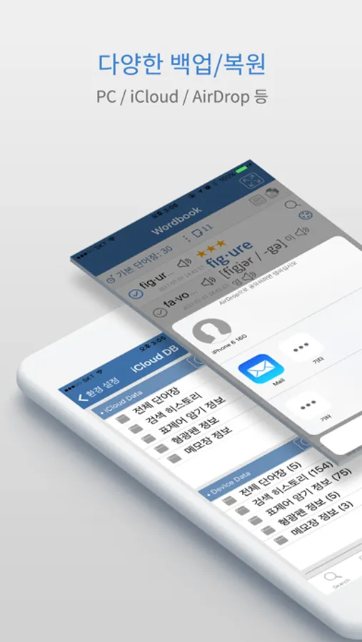 ● 사전류 최초 단어장 백업 기능 지원(iCloud 백업, PC-아이폰, AirDrop)
