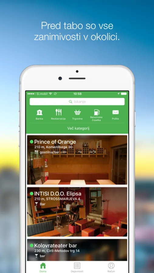 Najbolj iskane lokacije so zajete v kategorijah, informacije o drugih lokacijah, ki niso zajete v posamezni kategoriji, lahko najdete preko iskalnika v aplikaciji.