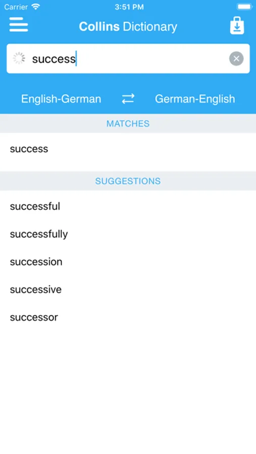 • Search autocomplete helps you find words quickly by displaying predictions as you type.