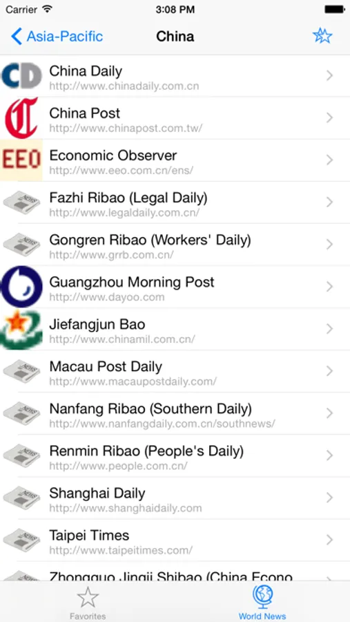 In the main country list, press the plus sign in the top right hand corner. Write the news source name, its web address, and pick the country it belongs to.