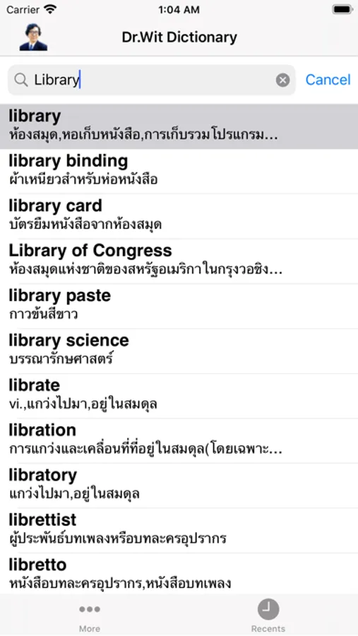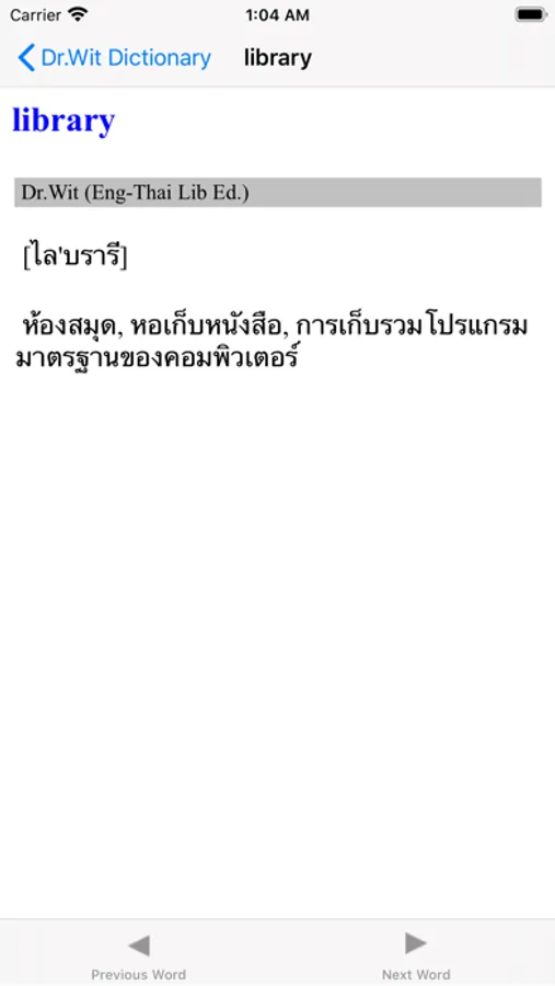 โปรแกรมพจนานุกรม Dr.Wit’s Dictionaries เป็นโปรแกรมพจนานุกรมบนเครื่องโทรศัพท์ iPhone และ iPod Touch ที่ทำให้ผู้ใช้งานสามารถค้นหาคำศัพท์คำแปลได้อย่างรวดเร็วที่สุด แสดงตัวสะกดคำอ่านทั้งไทยและอังกฤษแสดงความหมายได้อย่างครบถ้วน สะดวกง่ายดายในการค้นหาเพียงป้อนตัวอักษรก็จะเริ่มค้นหาคำศัพท์ สามารถดูคำก่อนหน้าและถัดไปได้อย่างง่ายดายสามารถใช้งานได้โดยไม่ต้องเชื่อมต่ออินเทอร์เน็ต