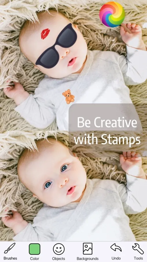 • Draw on your pics or dozens of included backgrounds.