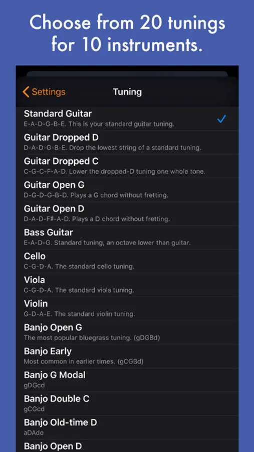 The tuner requires microphone access, which can be granted in the Settings app, under Privacy > Microphone. For best results, use a headset or microphone separate from the device.