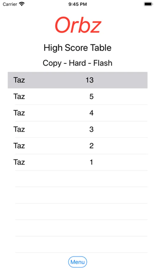 As an added Incentive each combination of Game type, mode and difficulty has a separate high score table.