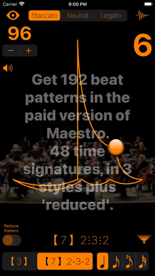 • Maestro Lite has 2 beat patterns (meters): 3 and 7(2+3+2)