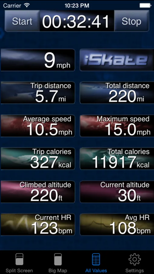 - Accurate values for current speed, average speed, maximum speed, total distance, trip distance, current altitude, climbed altitude, burned calories as well as trip time. Units can be set to US or metric.