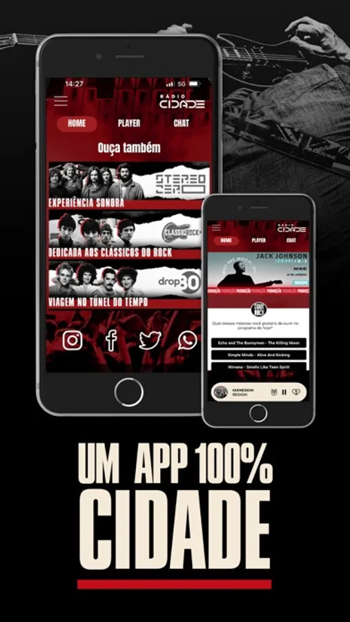 Além de ouvir o melhor do rock nacional e internacional e aproveitar promoções iradas, nosso aplicativo tem muita interatividade!