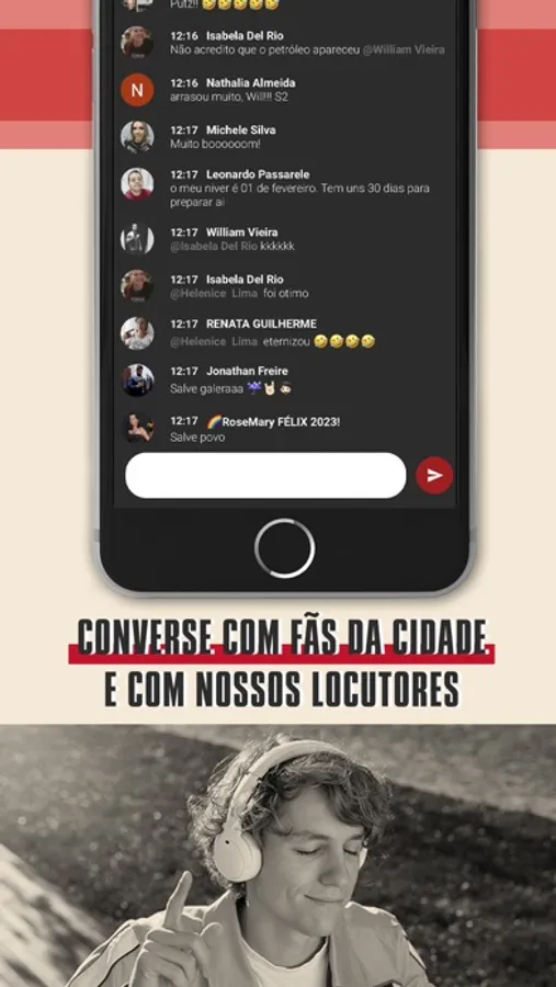 - Aproveitar nosso chat para conversar a qualquer momento com outros apaixonados pela Cidade e com nossos locutores