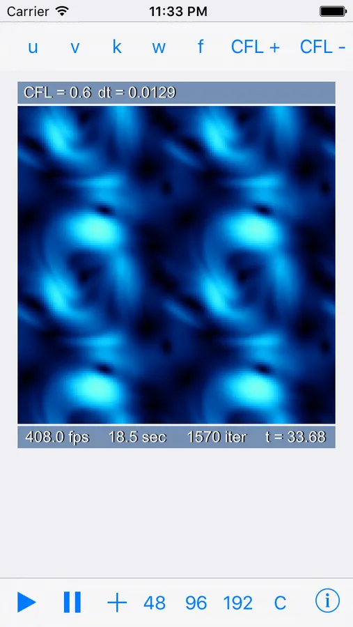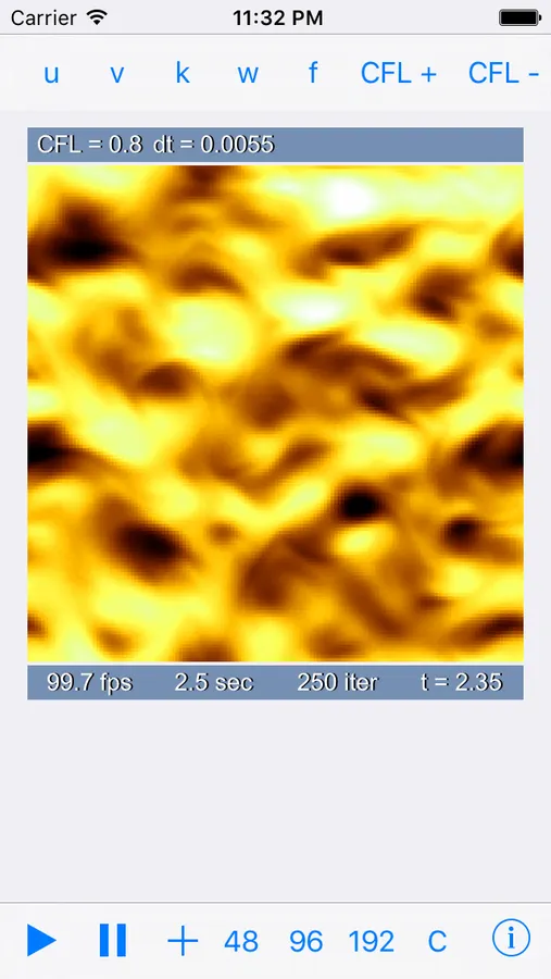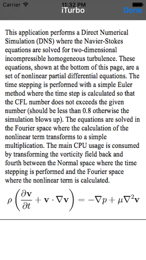 This application performs a Direct Numerical Simulation (DNS) where the Navier-Stokes equations are solved for two dimensional incompressible homogeneous turbulence. These equations are a set of nonlinear partial differential equations. The time stepping is performed with a simple Euler method where the time step is calculated so that the CFL number does not exceeds the given number (should be less than 0.8 otherwise the simulation blows up). The equations are solved in the Fourier space where the calculation of the nonlinear term transforms to a simple multiplication. The main CPU usage is consumed by transforming the vorticity field back and fourth between the Normal space where the time-stepping is performed and the Fourier space where the nonlinear term is calculated.