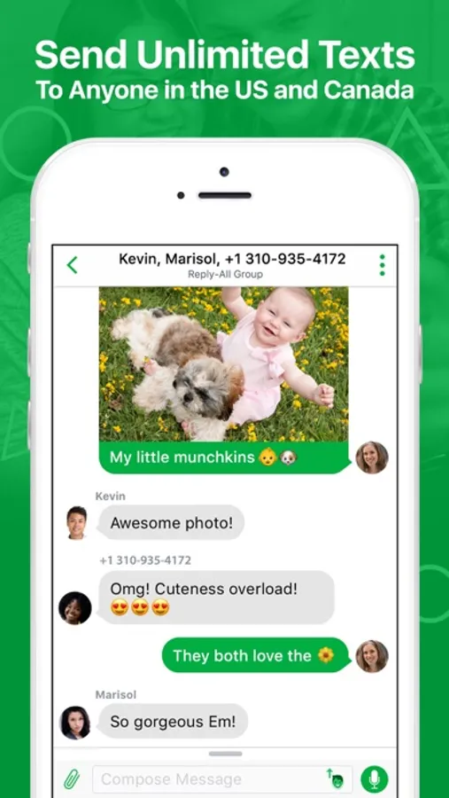 - Free texting (SMS, MMS + group chat) to any US or Canadian mobile number