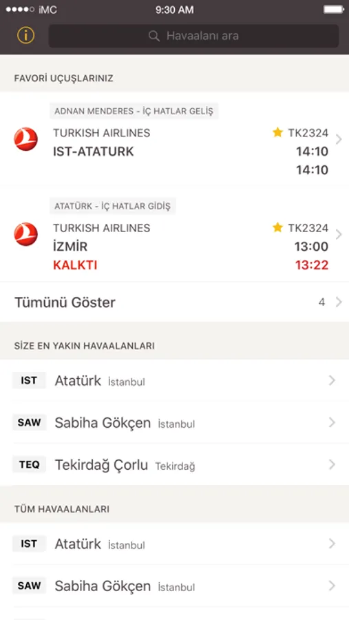 Havaalani is an application that displays the flight information in the major airports of Turkey.