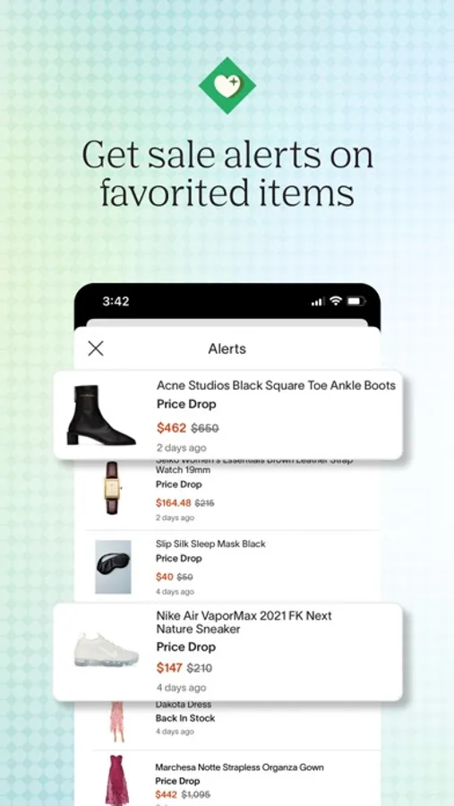 Sale Alerts, On The Spot: Favorite the styles you love—from clothes to shoes to decor—to get sale alerts. When the price drops, we’ll let you know.