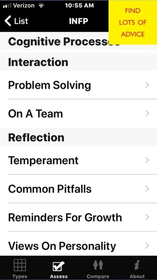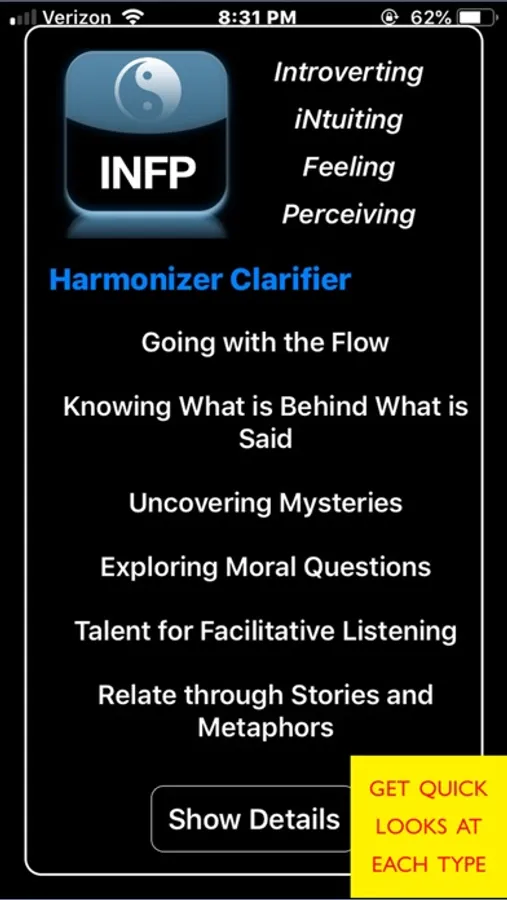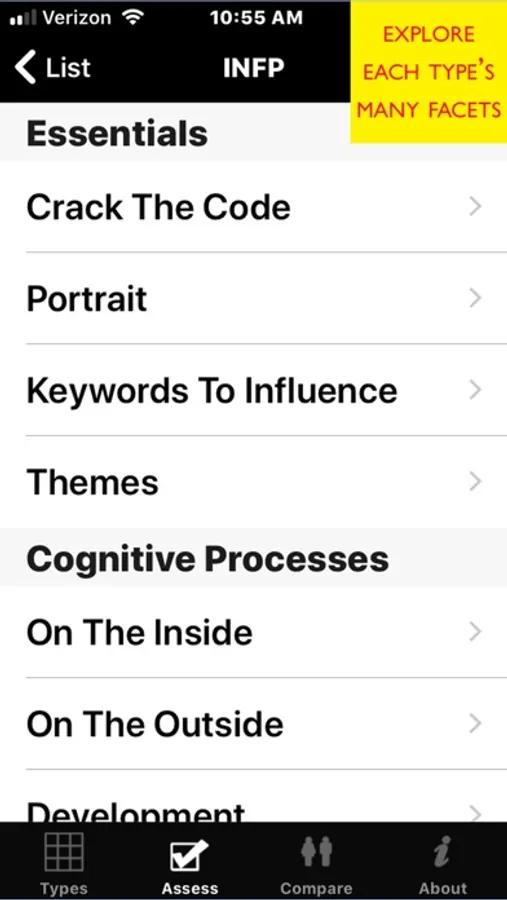 Whether you’re in a boring meeting, on the phone with a challenging client, or dealing with a flustered family member — this application is for you. The essential themes of each personality Type are just a tap away. You can also explore each personality in depth: learn a person’s core needs and values, cognitive processes, interaction style, team behavior, pitfalls, growth points, and much more.