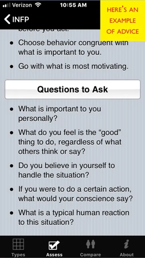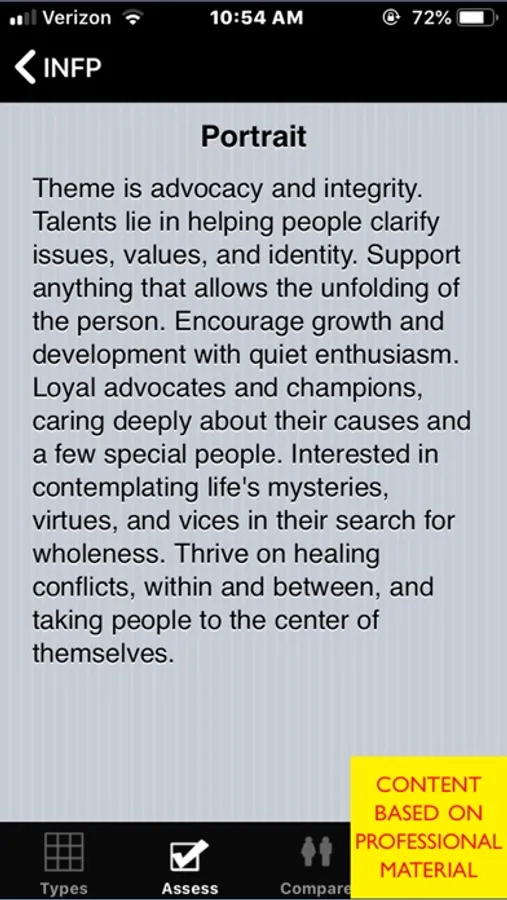 This application is ideal for serious students of psychology. Learning about ourselves and others is not done by simply “taking a test” that “tells” us who we are. Although we include multiple personality assessments, genuine learning for adults involves continual exploration and reflection. This application gives you tools; you the one who brings the curiosity and patience for discovery.